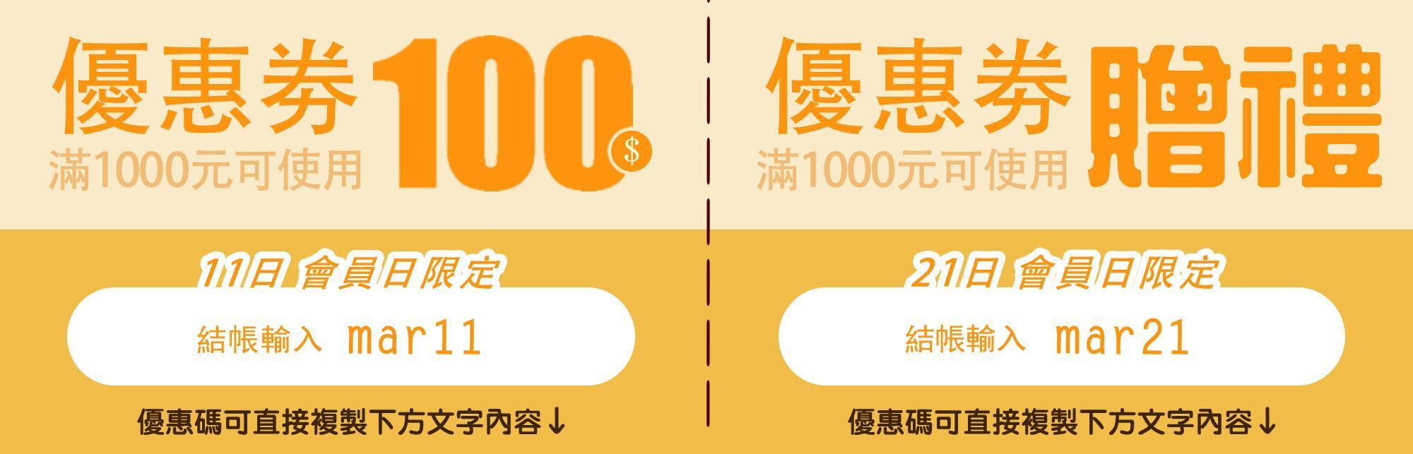 【會員日】每月11、21日滿千享優惠
